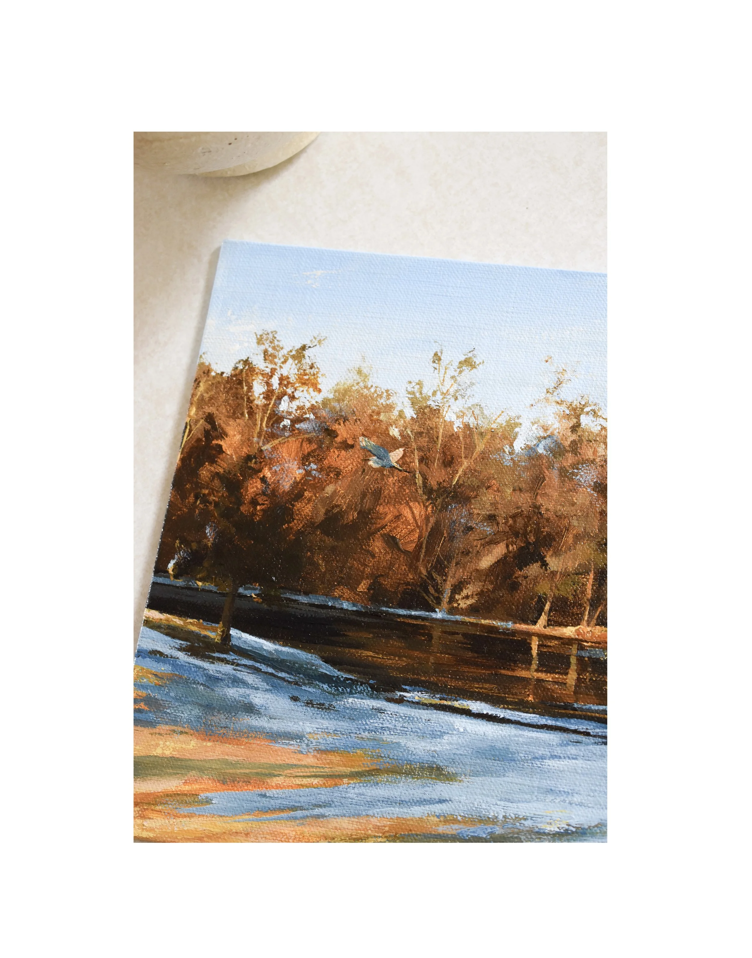 What is a “study”? — a study is a small painting where I focus on exploring color, light, and mood. I often paint these from a favorite memory, a special photo, or a moment I want to hold onto. Think of them as little snapshots of a scene, captured with brush and paint.